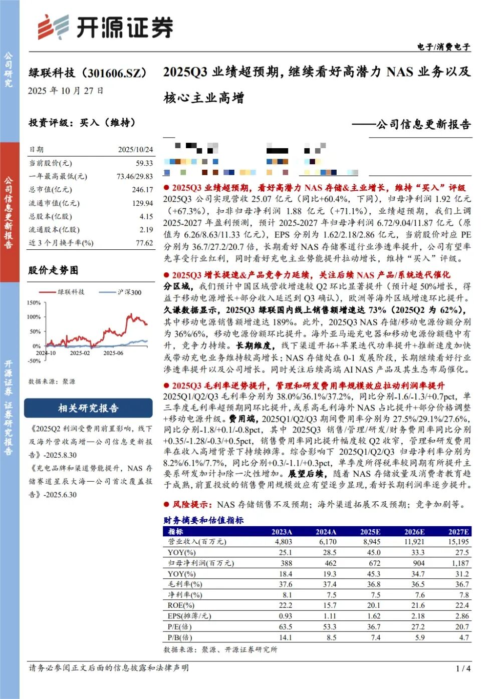 核心业务进展方面,NAS网络存储产品是当前的亮点,前三季度销售增长强劲,在主流电商平台的销量和销售额均位列第一,市场渗透率持续提升。