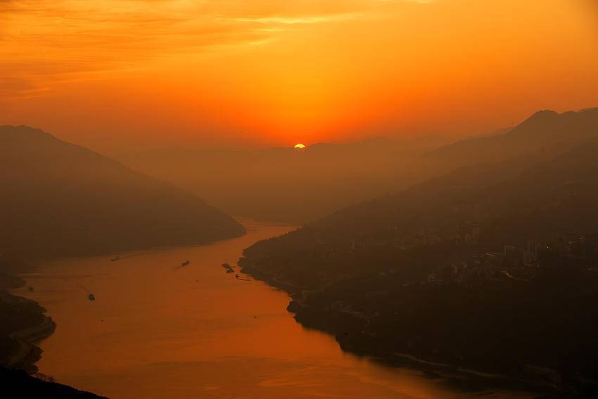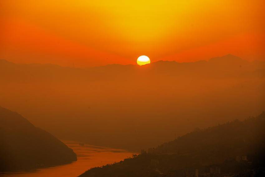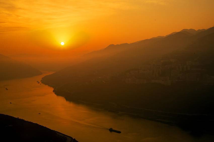 轻纱般的薄雾,温柔地笼罩着错落的山城,将楼宇、江岸晕染出几分朦胧诗意。霞光穿雾而来,为这片静谧的天地镀上一层暖金。山、水、城在光影交织间,勾勒出一幅宁静幽远的峡江晨景图。